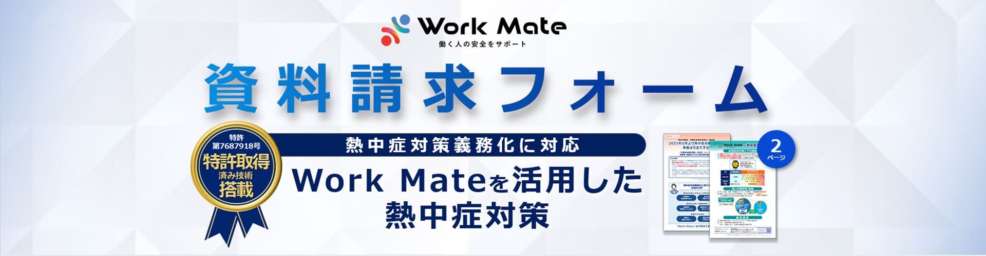 特許を取得(特許第7687918号)した、「Work Mate」の「熱中症予兆検知」機能を活用して、貴社の熱中症対策を強化しませんか。